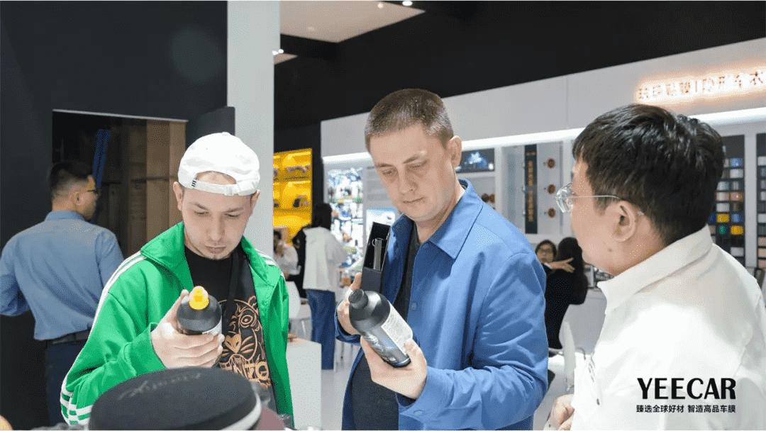 该系列产品采用国际一线品牌的同源原材料,从基材、胶水到涂层工艺均对标行业顶尖标准,但在定价上仅需大牌的一半。这种“一线品质,一半价格”的极致性价比,在现场引发了强烈反响。不少专业观众在体验了艺卡车衣的实物质感、厚度及自修复性能后,对其扎实的用料和卓越的保护效果赞不绝口。